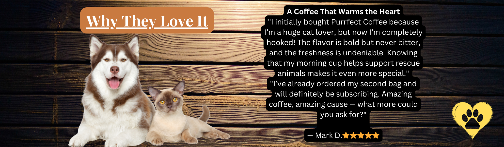 Purrfect Coffee combines gourmet small-batch roasting with purpose. Our beans are sourced from high-altitude farms across Central and South America, and each bag helps fund animal rescue efforts across the U.S. Whether you're sipping a bold French roast or a mellow morning brew, every cup supports a life-saving mission. ☕🐾